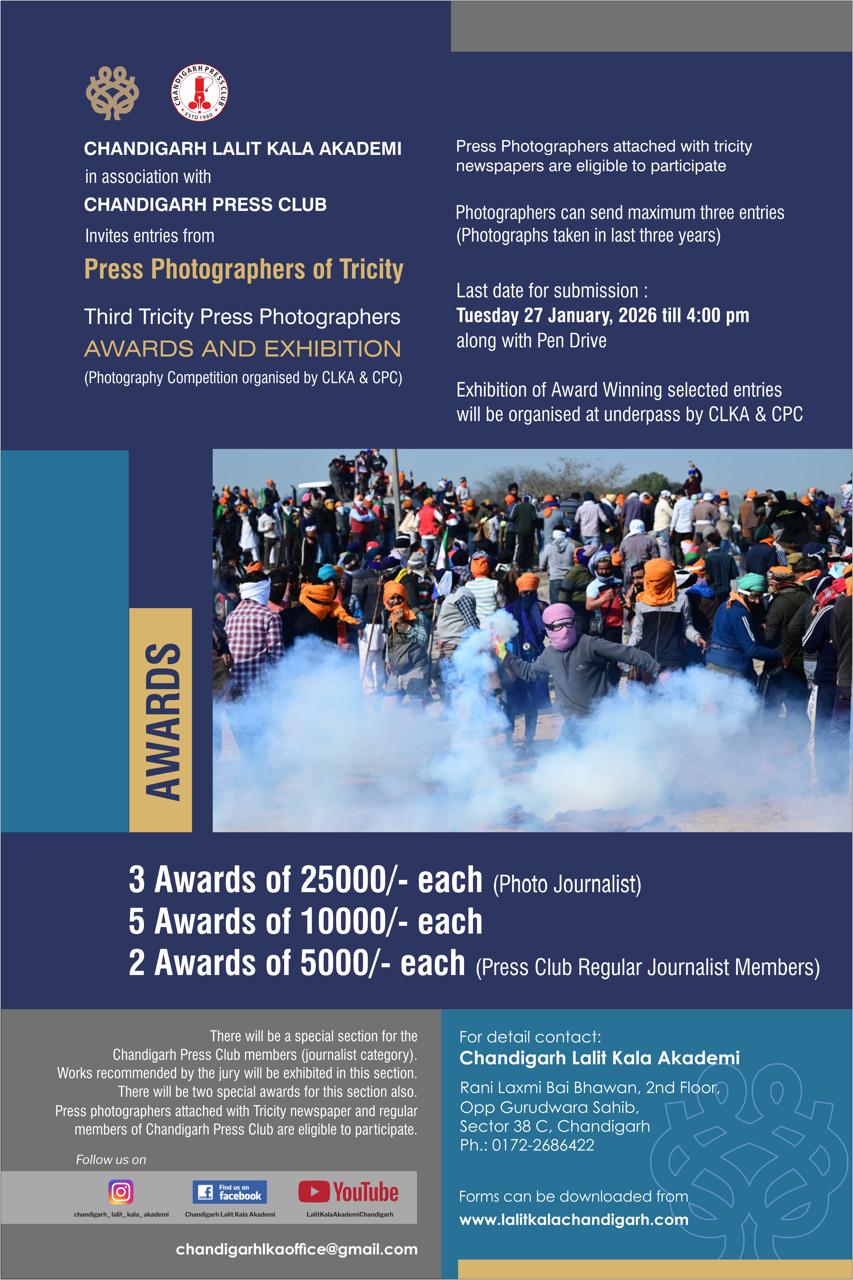 Chandigarh Lalit Kala Akademi cordially invites you to the 2nd Tricity School Art Teachers Exhibition & Awards. Opening on Friday, 16th January 2026, 5.00 PM at Govt. Museum and Art Gallery, Sector-10 C, Chandigarh. The exhibition will remain open till 23rd January 2026 daily from 11 am to 7 Pm. (Sunday open, Monday Closed)